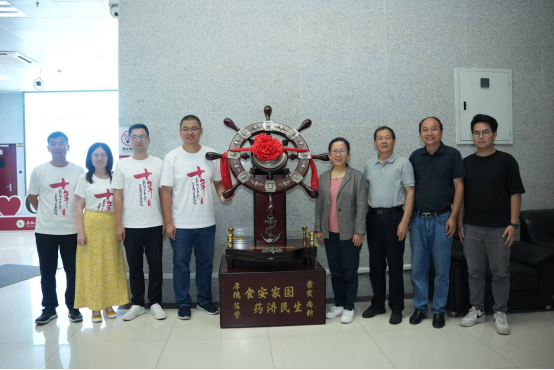 Subsequently, the alumni donated the rudder ornaments of "Food An Jia Country, Medicine Helps People's Livelihood" for the college, and in the lobby of the first floor of the food building, the alumni representatives held a donation ceremony and took a group photo in front of the college building.