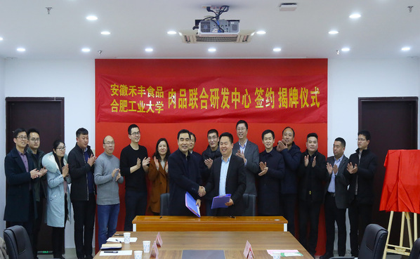 3月4日下午,我校与安徽禾丰食品有限责任公司(以下简称“禾丰食品”)肉品联合研发中心的签约及揭牌仪式在76net必赢线路检测中心举行。76net必赢线路检测中心院长徐宝才教授、党委书记陈从贵教授、副院长汪惠丽教授,禾丰...