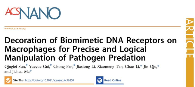 近日,76net必赢线路检测中心李超副教授、虹桥国际医学研究院的马洁桦副研究员和上海交通大学医学院附属同仁医院丘瑾主任联合在国际著名期刊《ACS Nano》上发表研究论文“Decoration of biomimetic DNA receptors on macrophages for precise and logical manipulation of pathogen predation”。作为先天免疫系统的重要组成细胞,巨噬细胞膜表面含有诸多蛋白质受体用于识别与吞噬各种病原菌。然而,经过千百万年的演化,许多病原...