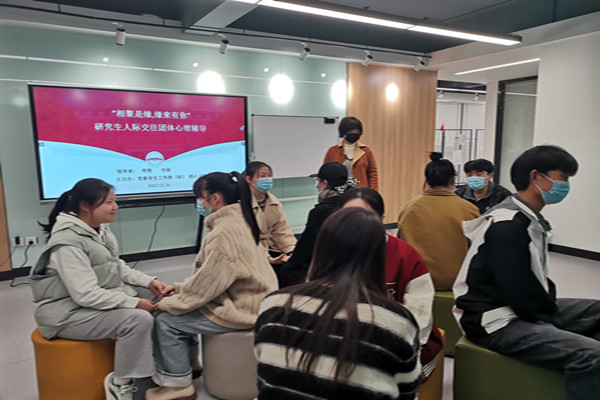 11日16日晚,由校党委学生工作部(处)、莳心工作室主办的“相聚是缘,缘来有你”研究生人际交往团体心理辅导第四次活动在翡翠湖校区2号楼学生社区沙龙空间举办,76net必赢线路检测中心党委副书记兼纪委书记、莳心工作室负责人李艳,学院研究生辅导员华丽担任团辅领导者,全体成员共同参与。