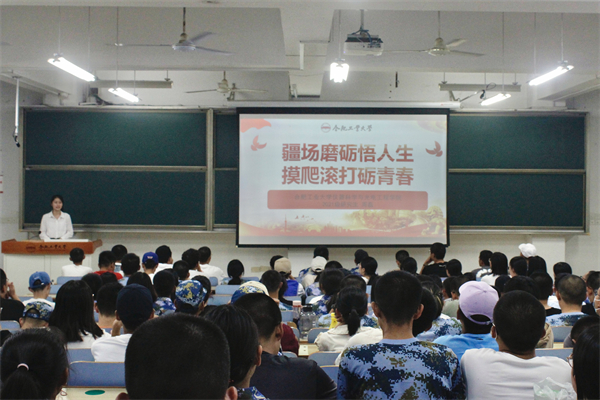 8月31日晚上,2022级辅导员陈海杰老师,军训辅导员张倩老师开展军旅成才分享会,曾参军报国的周磊同学介绍了其军旅生活与参军收获,强化了同学们的爱国之心与参军报国之志。