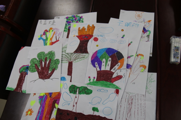 在素质拓展活动中,支教团成员们又变身成为孩子们的“大朋友”,与他们一起开展趣味美术学习。支教团成员向孩子们介绍荷兰后印象派画家梵高的生平和作品,并展示《橄榄树》的夸张手法,解析绘画大师如何使用点线并行去构造独立的色彩,来生动描绘肆意生长、充满活力的橄榄树。随后,成员带领孩子们填色画图。孩子们用课堂上讲授的知识结合自己的想象,认真地创作着自己的作品。绘画的每一个笔触、每一块色彩以及色彩之间的关系、画面的形式都体现了孩子们的美好憧憬。