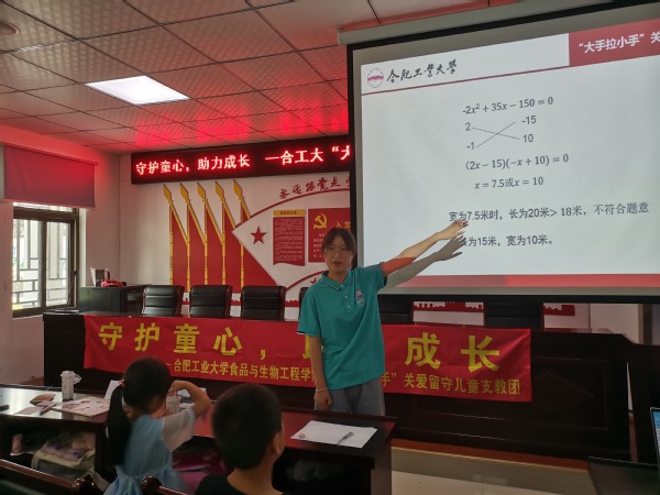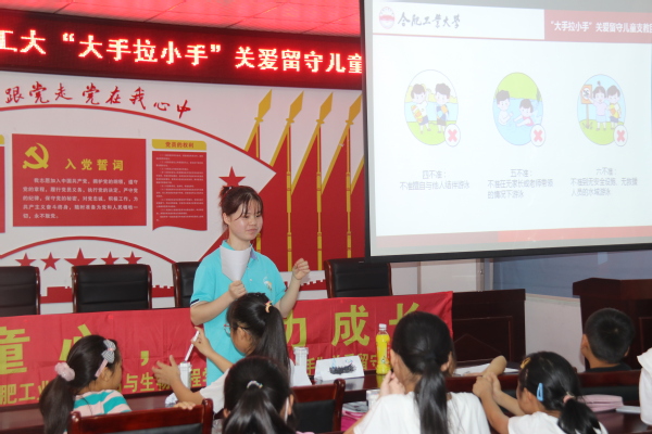 7月16日,在巢湖市柘皋镇汪桥村支教的第二天,76net必赢线路检测中心“大手拉小手”关爱留守儿童支教团围绕国学文化、心理德育、文体美育、安全成长四个方面设置了支教内容。