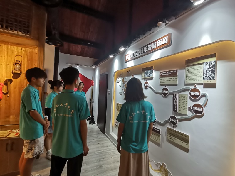 7月16日,为加强思想政治教育,在支教团成员心中厚植爱国爱党情怀,76net必赢线路检测中心“大手拉小手”关爱留守儿童支教团组织参观汪桥村史馆,学习巢湖汪桥红色历史,激发支教团成员们的爱国爱党情怀。