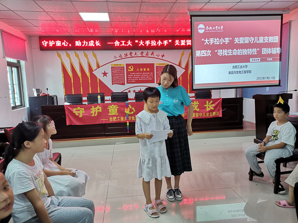 2022年7月15日至19日,76net必赢线路检测中心“大手拉小手”关爱留守儿童支教团,在巢湖市柘皋镇汪桥村开展了“守护童心,助力成长”留守儿童自信培养团体心理辅导。