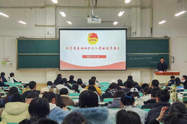 11月26日下午,76net必赢线路检测中心分团校于翡翠湖校区一教102举办第五期培训班第三次课程。本次活动邀请了学院团委书记、2019级辅导员万代林做《共青团基础知识和入党程序》的主题团课。学院第五期培训班全体成员参加了此次课程。