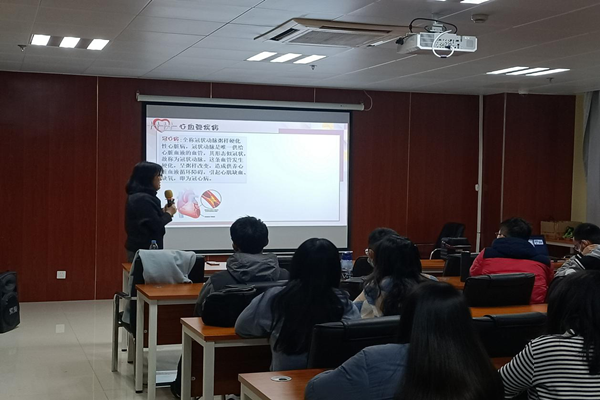 报告会上,段教授先为同学们讲述了心血管系统的基本组成和血液循环流动的过程,及其在人体中所发挥的作用,提醒同学们重视心血管的健康;接着,段教授向同学们介绍了心血管疾病,讲述其病理和分类,还介绍了我国当前心血管疾病患病的情况;最后,段教授向同学们传授了许多保护心血管系统的方法,倡导同学们健康生活,拥有良好体质。