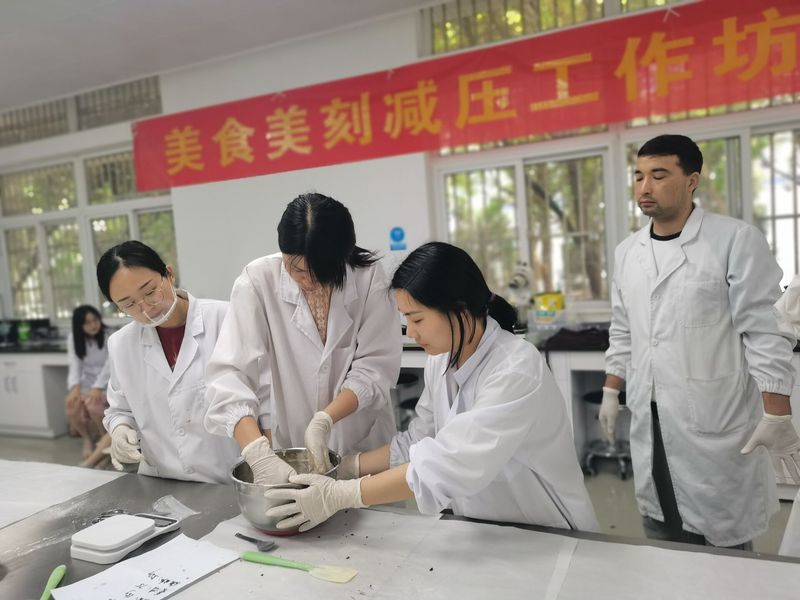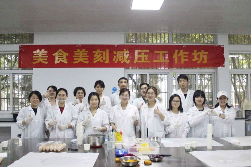 6月2日下午,党委学生工作部、莳心工作室在翡翠湖校区3号实验楼烘焙实验室成功举办美食美刻减压工作坊,来自各学院的数十余位老师参与了本次活动。