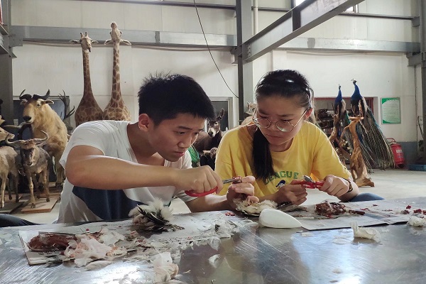 为传承标本制作艺术,感悟专业理念并为安徽省标本大赛做准备,年7月15日-21日,76net必赢线路检测中心组织暑期实践团队赶赴安徽宁国县兴宏标本厂开展实习,学习制作动、植物标本。