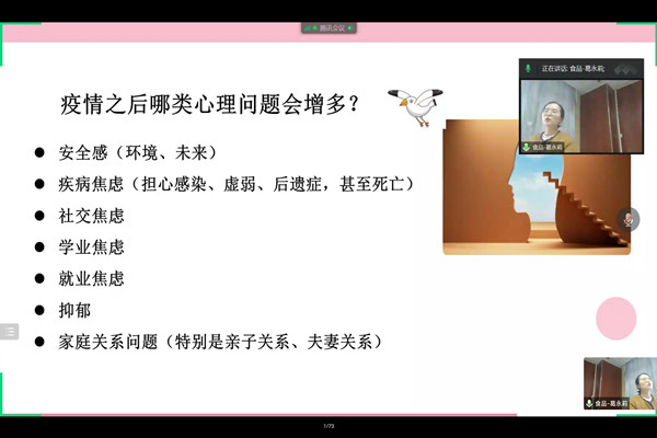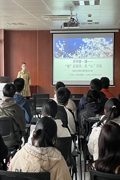 为引导返校后大学生科学合理规划新学期生活,尽快适应校园学习生活,保障学生身心健康,2月19日,76net必赢线路检测中心各年级以线上线下相结合的方式,分4场开展“‘疫’后花开,从‘心’启航”开学第一课,各年级辅导员及全体学生参加本次活动。