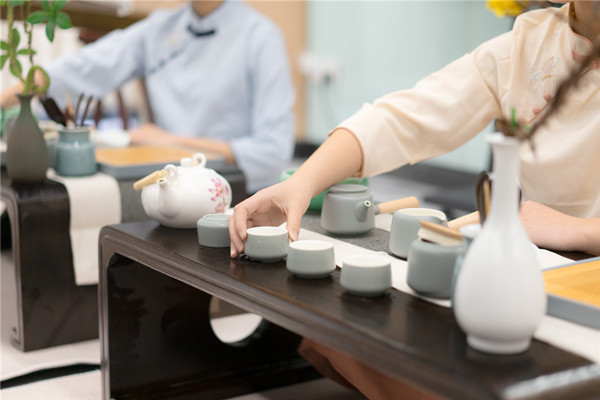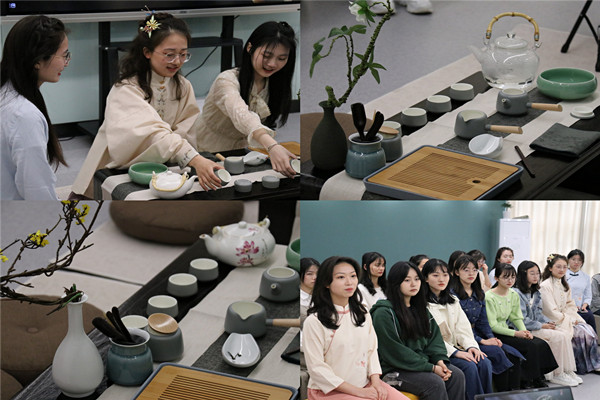 表演结束后,同学们分小组进行茶艺表演体验,过程中茶艺表演队成员悉心指导,在认真教学中同学们很快掌握了表演技巧,并将冲泡出的香气四溢的茶水让在场同学品鉴。分享环节中,同学们表达了对以举办体验营的形式传播茶文化的肯定,并认为活动极大程度地提高了同学们的动手能力、文化素养和艺术欣赏能力。