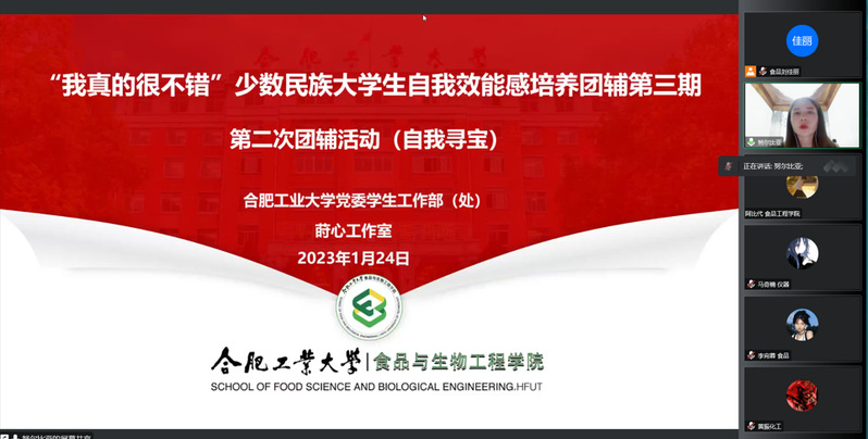 为普及大学生心理健康知识,帮助少数民族大学生培养自尊自信、理性平和、亲善有爱的良好心态,1月24日晚,由校党委学生工作部(处)主办、莳心工作室承办的第三期“我真的很不错”少数民族大学生自我效能感培养团体心理辅导在线上成功举办第二次活动。76net必赢线路检测中心2021级辅导员努尔比耶姆·麦麦提担任团辅领导者,来自全校不同学院32名同学参加了活动。