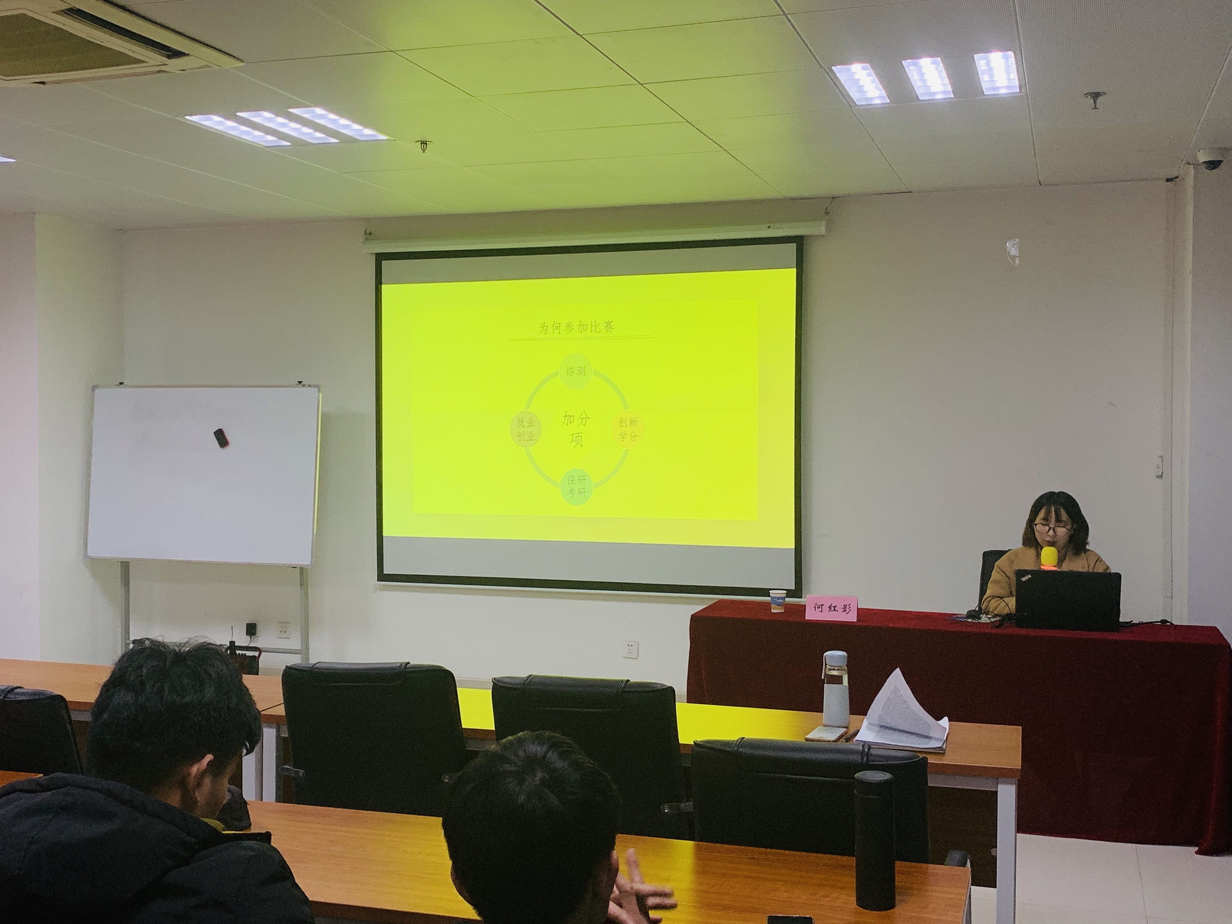 何红影同学首先给大家做了以“睿智创新始于心,激情创业践于行”为主题的报告,分别从自己的参赛历程、为何参加比赛、如何做好比赛三个方面进行介绍。给大家分享了自己在创新创业过程中遇到的问题及解决的办法。她还鼓励大家要积极参与创新创业实践活动,在比赛、交流中碰撞出新的灵感源泉,同时,也希望同学们能打破专业、学科的束缚,组建协同创新的团队。