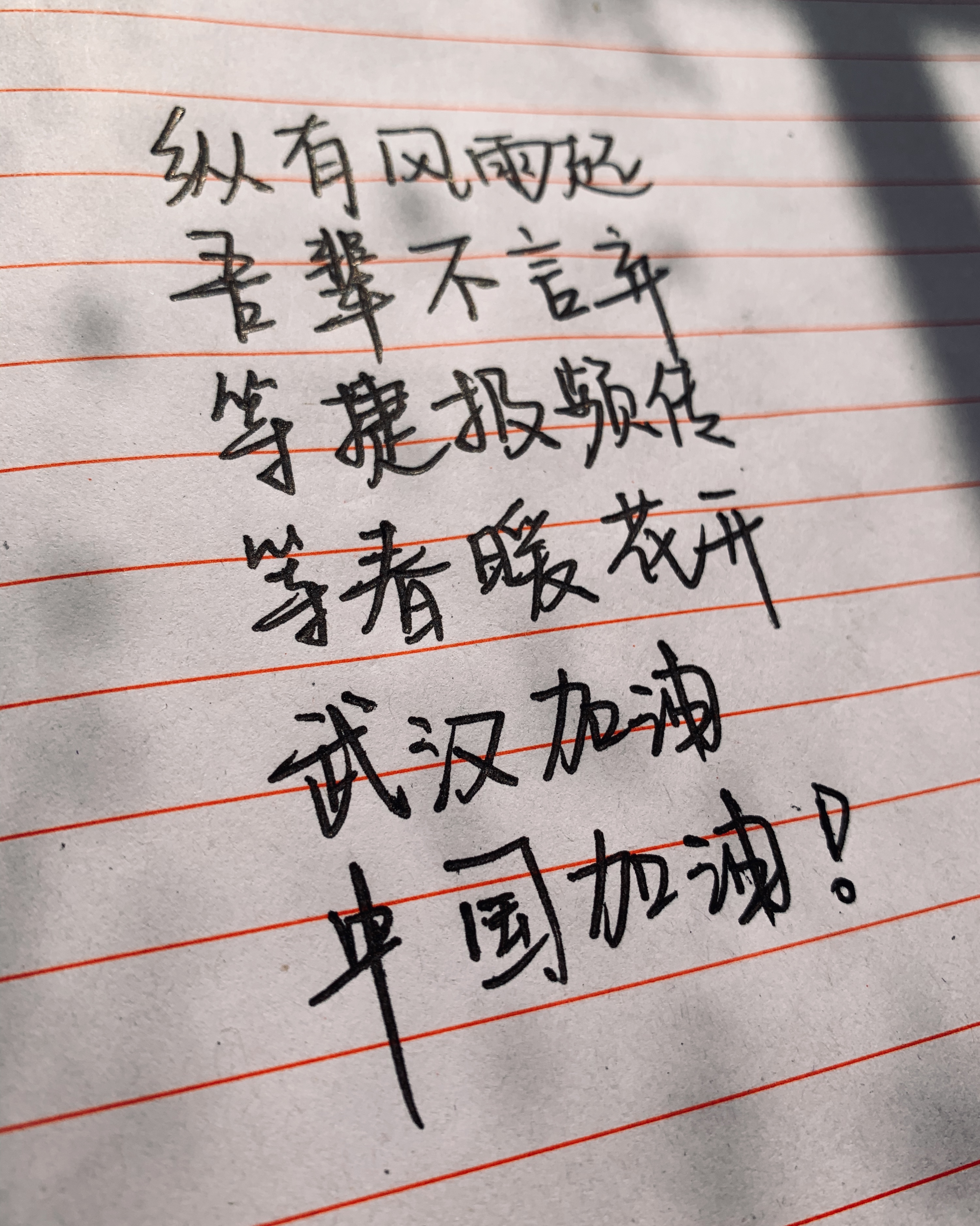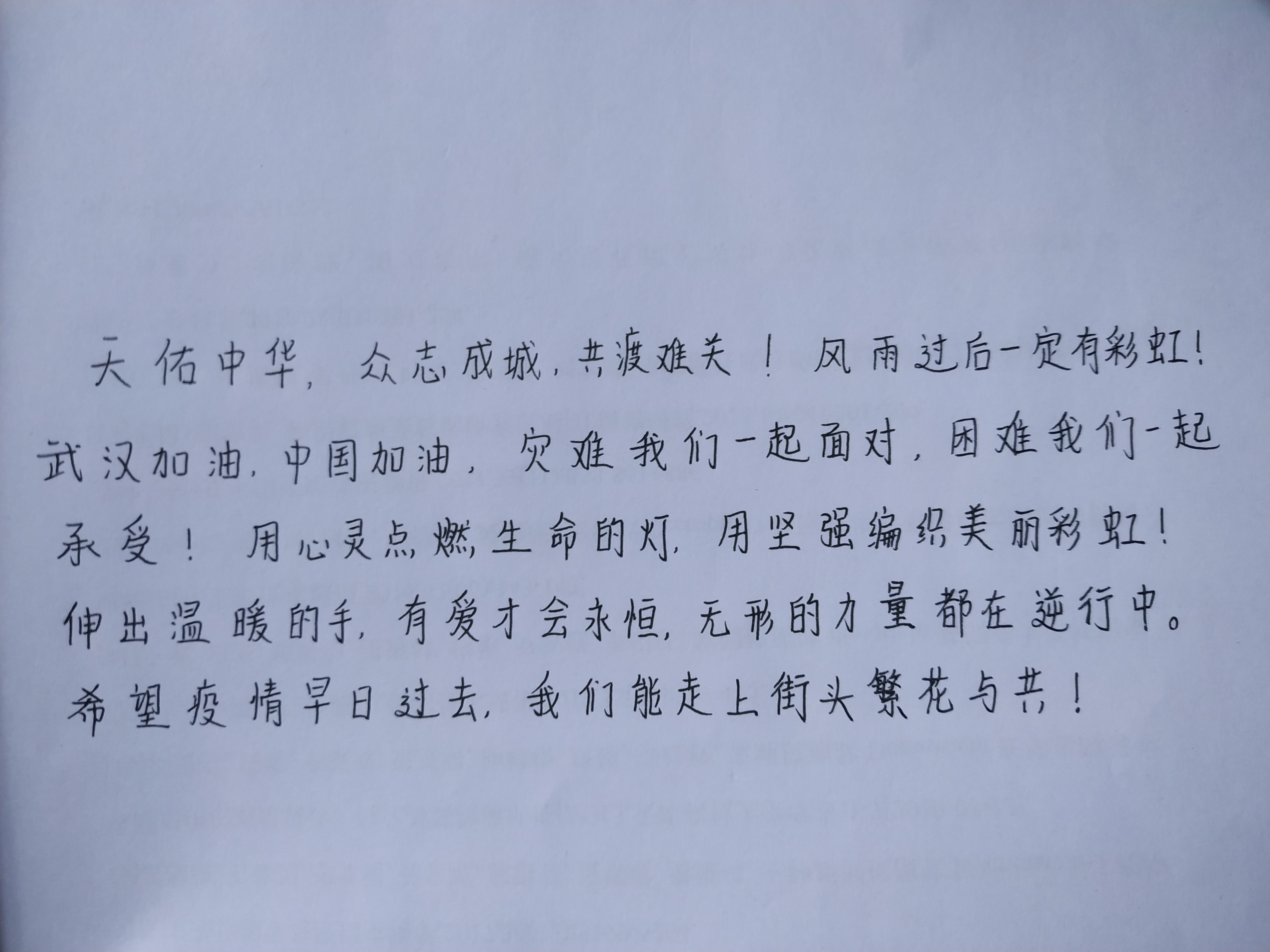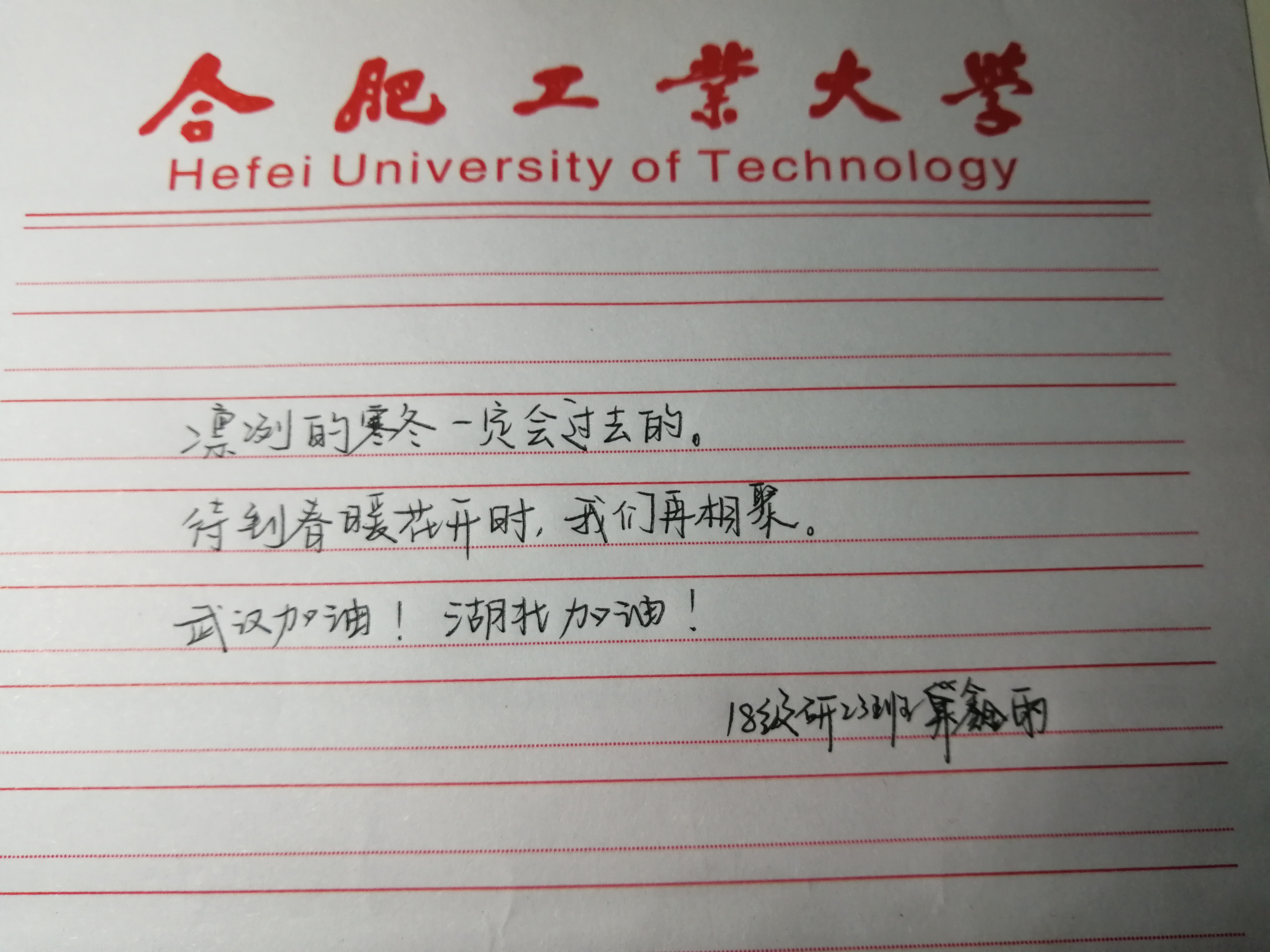 亲爱的武汉!这个二月,有份温暖想对你说!来自76net必赢线路检测中心的小伙伴们积极响应疫情防控安排的同时,用图片谱写下自己对武汉想说的话语,一笔一画勾勒出对武汉、对国家最真诚的祝福,期待着战胜疫情的捷报传来!