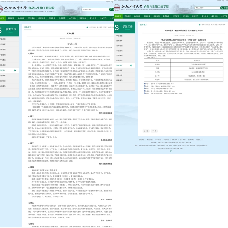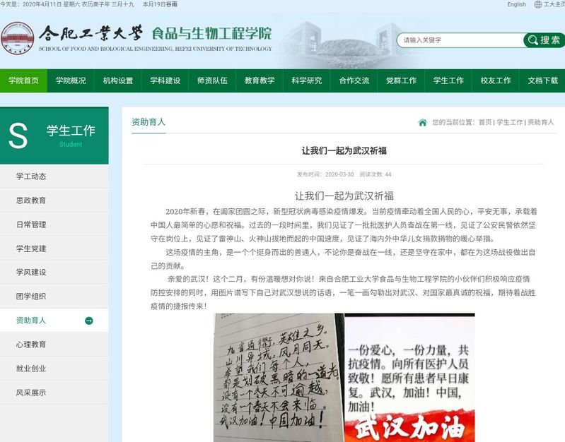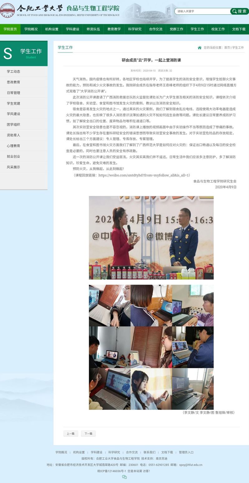 “为武汉祈福”、“分享考研复试心得”活动、“抗疫有我”征文,组织观看“消防直播”