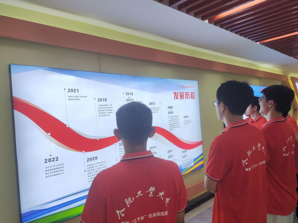 当日上午,团队到达徐州润客食品有限公司,在润客人事经理闫欢的组织下,团队集体观看了润客的参观走廊。在参观走廊中,团队了解到润客的发展历程、特色产品、企业文化、社会责任、荣誉资证等。在参观结束后,闫欢向团队成员介绍了益客秉承“合作发展,分享成长”的发展理念,在产业链的各个环节与行业内专业人士和企业联动,共同打造具有系统能力和较强韧性的农牧产业平台,打造“饮食无忧”的消费文化,在孵化育苗、饲料生产、养殖管理、禽肉加工等环节严格管控,建立起整个产业链的食品安全保障体系。同时,团队了解到,益客食品在禽类食品产业深耕十余年,始终遵循“客户第一、质量第一”的经营方针,不断提高公司产品质量水平及创新研发能力,形成了高品质的全系产品供应能力,服务全国2000多家优质客户,获得中国优秀食材供应商、中国团餐好食材、十大品牌供应商、十大国宴菜品等美誉。