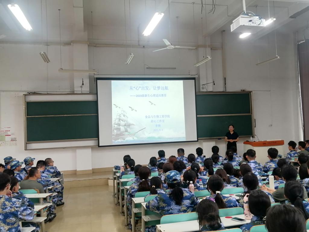 9月4日,食品与生物工程学院在翡翠湖校区一教102开展“从‘心’开始 ,扬帆起航”新生心理适应教育讲座。讲座由76net必赢线路检测中心党委副书记李艳主讲,学院2023级本科生辅导员及全体新生参与了此次讲座。
