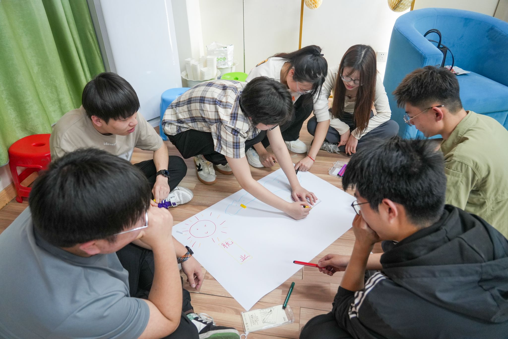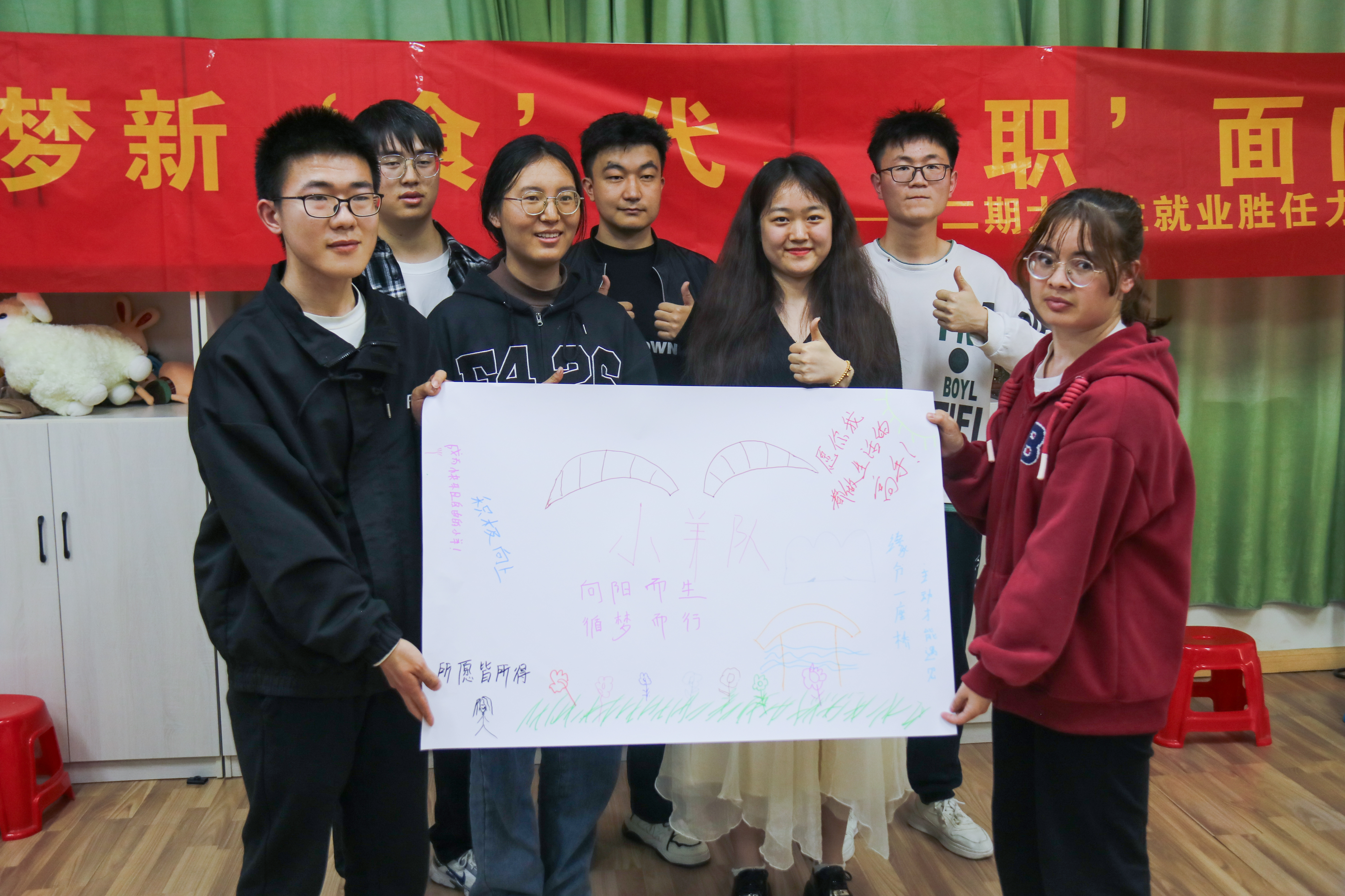 紧接着,同学们展开热烈的讨论和精密的合作,完成各小组任务,并积极进行小组展示。各小组手持海报摆出造型,用激昂的歌声唱出团队的精神风采,并派出代表表达小组海报创作的过程、遇到的困难和小组的优势等。最后,李艳进行活动总结,她表示在未来的职场上,需要同学们具备如收集资料、人际沟通、换位思考、恰当表达、文字撰写、团队协作等多方面的能力,此次活动的开展就是激励大家勇敢地迈出走向职场的第一步。她希望同学们要善于挖掘自己的优势,在职场中找到适合自己的职位,并在其中发光发热。活动结束后,同学们纷纷表示在轻松愉悦的团队合作氛围中,收获满满。