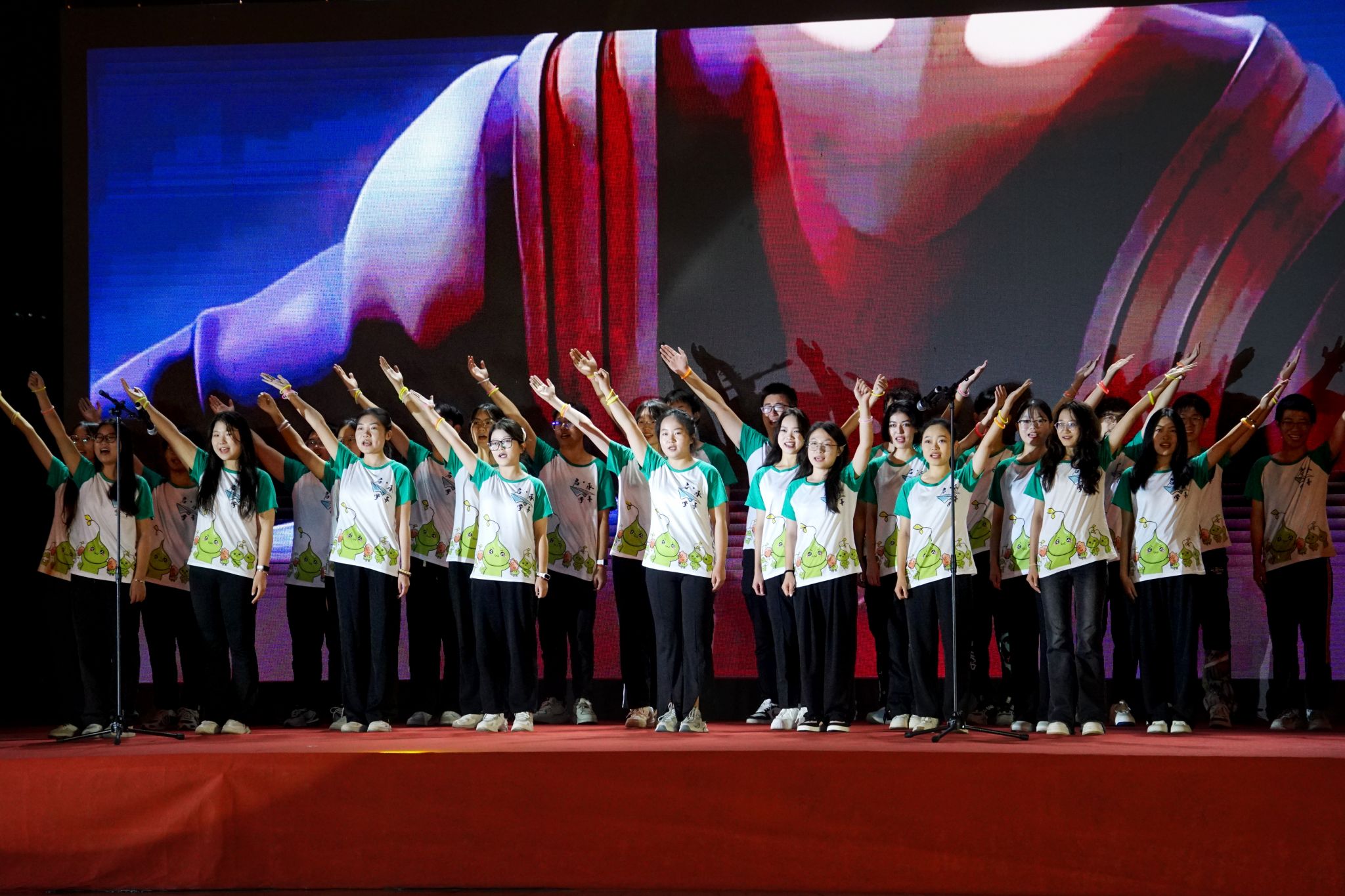 晚会共分为“扬新帆”、“展新颜”和“绘新篇”三个篇章,青春激扬的乐队带来歌曲《闹海》,正式拉开了晚会序幕。乐器表演《月光下的凤尾竹》《unravel》《无羁》节奏欢快、旋律悠扬,给人独特的艺术体验;舞蹈表演《恋爱告急》《西域风情》活力满满,展现了食生学子的无限活力;非遗文化《热巴霞卓》以铃鼓为主,博得众人的喝彩声;歌曲《第一天》《骁》《南山南》《安静》《Someone like you》《小镇姑娘》《再回首》音符跳跃,将节目推向一个个高潮;学导团合唱《奇迹再现》充满力量,给予新生无限希望;晚会的压轴表演,由2024级新生辅导员栗瑞杰、王哲贤带来歌曲《我爱你,中国》,唤醒师生共同的文化记忆与民族自豪感。期间,穿插着的互动小游戏,让同学们重温了校史校训、学院育人理念等。