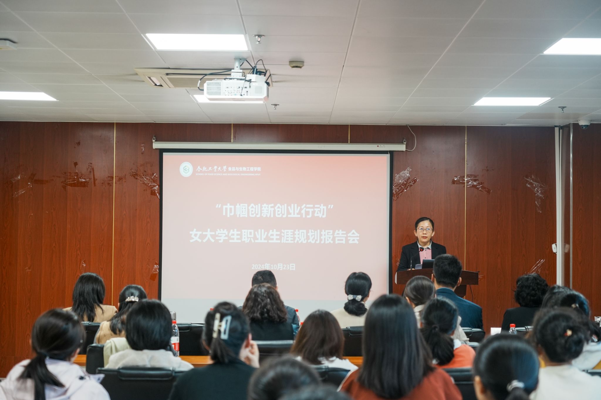 10月23日下午,在翡翠湖校区76net必赢线路检测中心206会议室成功开展“巾帼创新创业行动”女大学生职业生涯规划报告会,活动由合肥经开区妇联、合肥经开区组织人事局、bwin必赢线路检测党委学生工作部(处)“筑梦·启航”职业规划与就业指导工作室、申博人力资源集团联合举办。76net必赢线路检测中心副书记兼纪委书记、工作室负责人李艳担任主持。