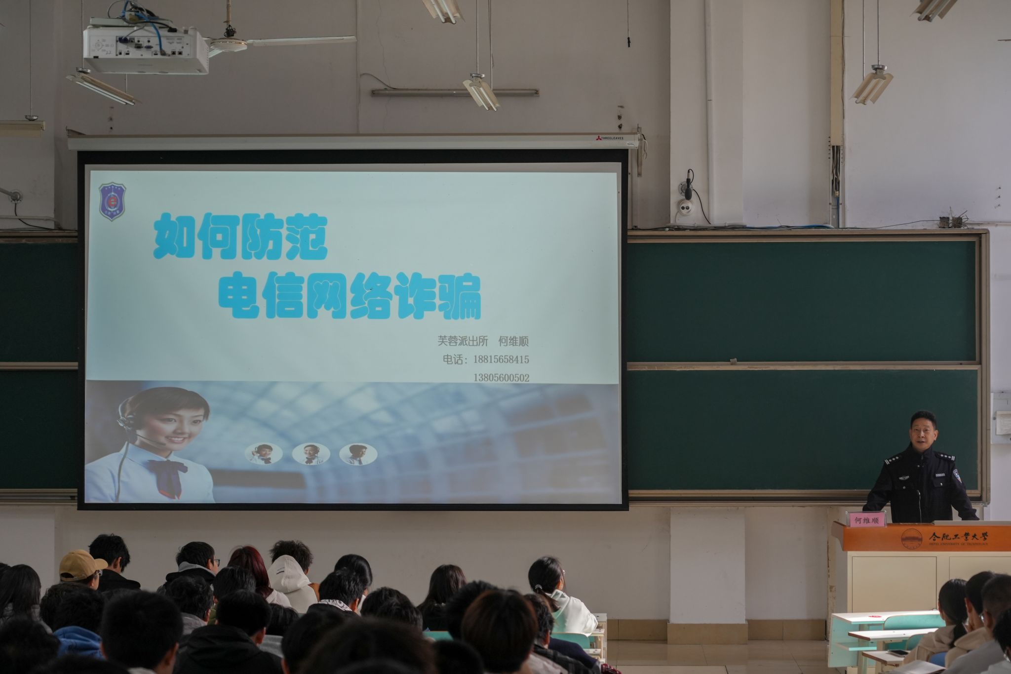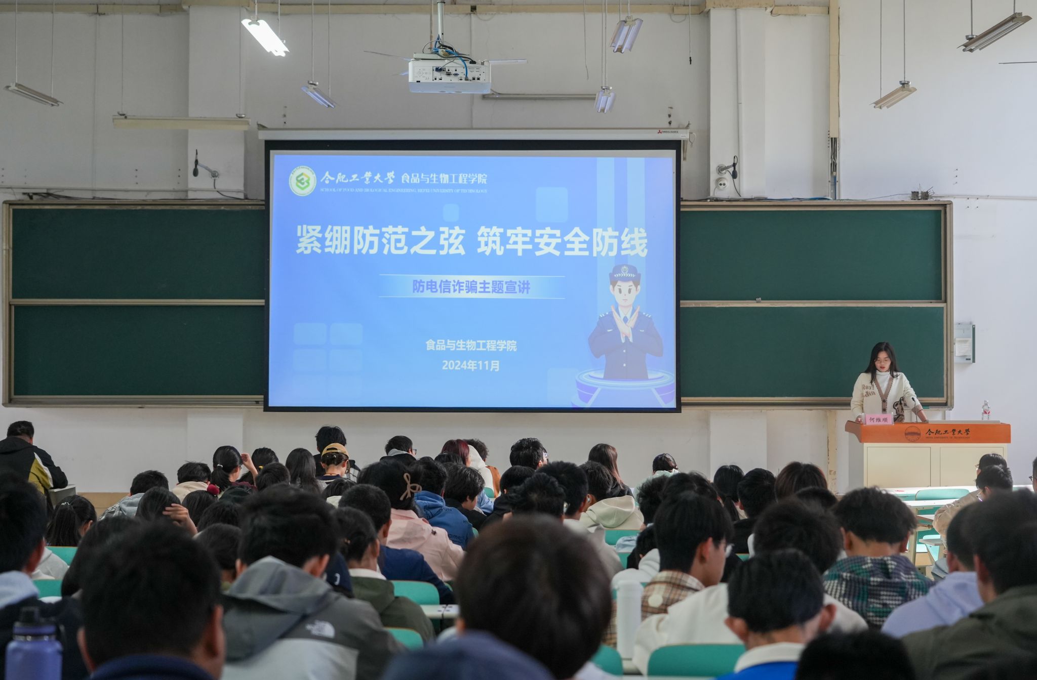 为进一步提高学生的网络电信诈骗识别和防范能力,维护同学们的切身利益,预防各类网络电信诈骗事件,营造和谐平安的校园环境,11月11日上午10:00,76net必赢线路检测中心于翠一教102教室举行主题为“紧绷防范之弦,筑牢安全防线”的防电信诈骗主题宣讲活动。学院特别邀请了合肥市经开区芙蓉派出所何维顺警官作为主讲嘉宾。