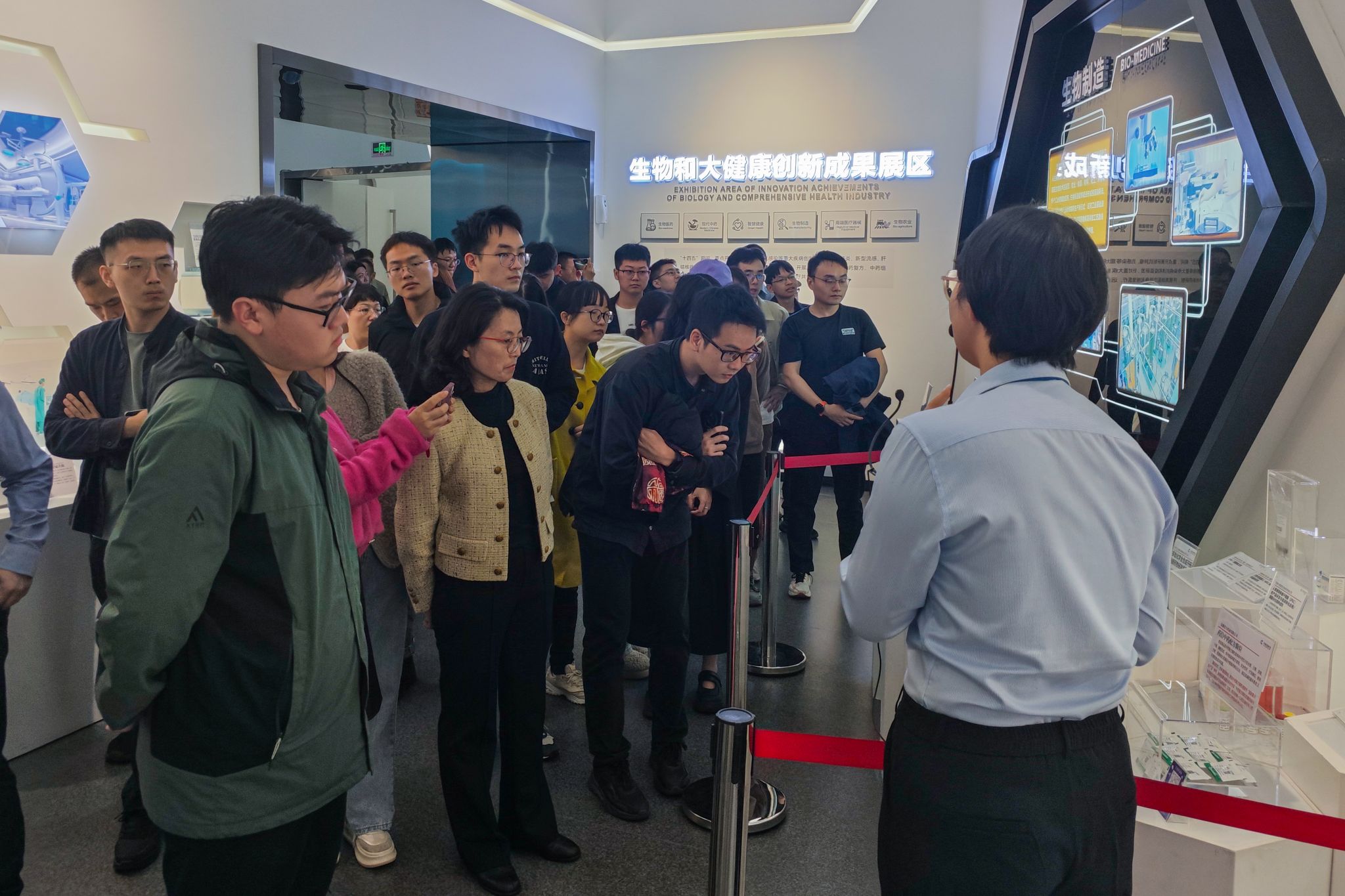 在专业讲解员的带领下,学员们深入探索“创引擎”“创智慧”“创未来”三大主题展区,逐个参观“人造太阳”全超导托卡马克装置、稳态强磁场模型等尖端科研成果。世界首台量子计算机、世界首颗量子通信卫星“墨子号”、0.12毫米超薄玻璃……学员们被安徽科技创新的魅力与活力深深感染。特别是在与自身专业相关的生物和大健康创新成果展区,学员们边看边记录,更加深刻地认识到作为新时代青年在科技创新、服务国家大健康战略中的重要作用和责任。学员们纷纷表示将坚定科学探索的精神,勇于创新,不断追求卓越,以更加积极的态度投身于学习和科研工作,努力成为具有创新精神和实践能力的人才,为实现科技强国梦贡献青春力量。