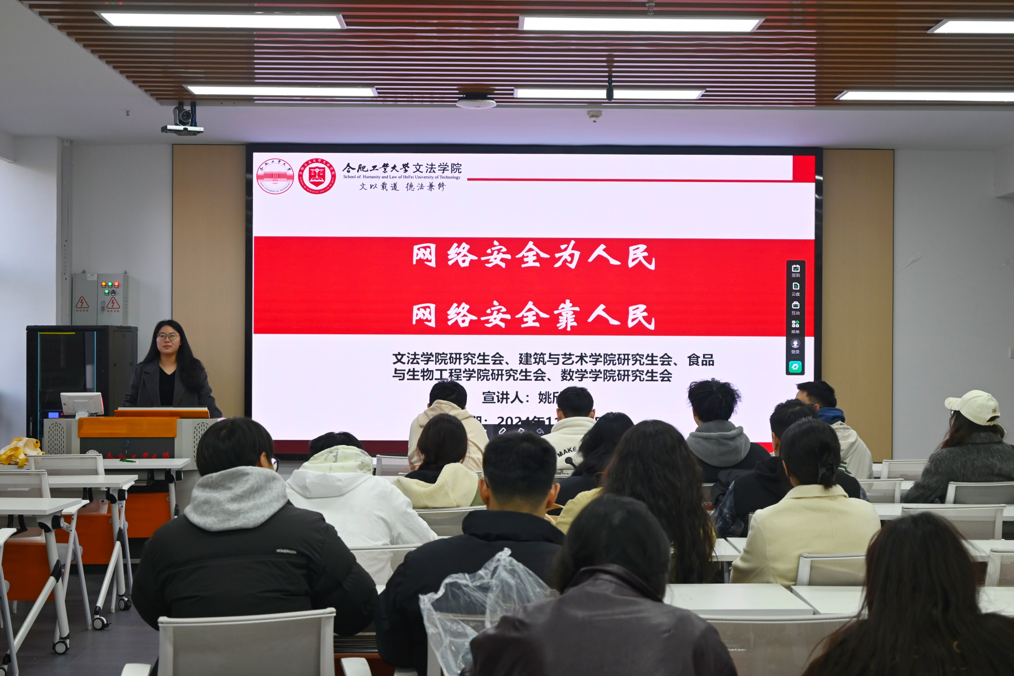 11月27日,76net必赢线路检测中心联合文法学院、建艺学院和数学学院在建艺馆118教室成功举办主题为“防范校园电信诈骗”的普法理论宣讲活动。