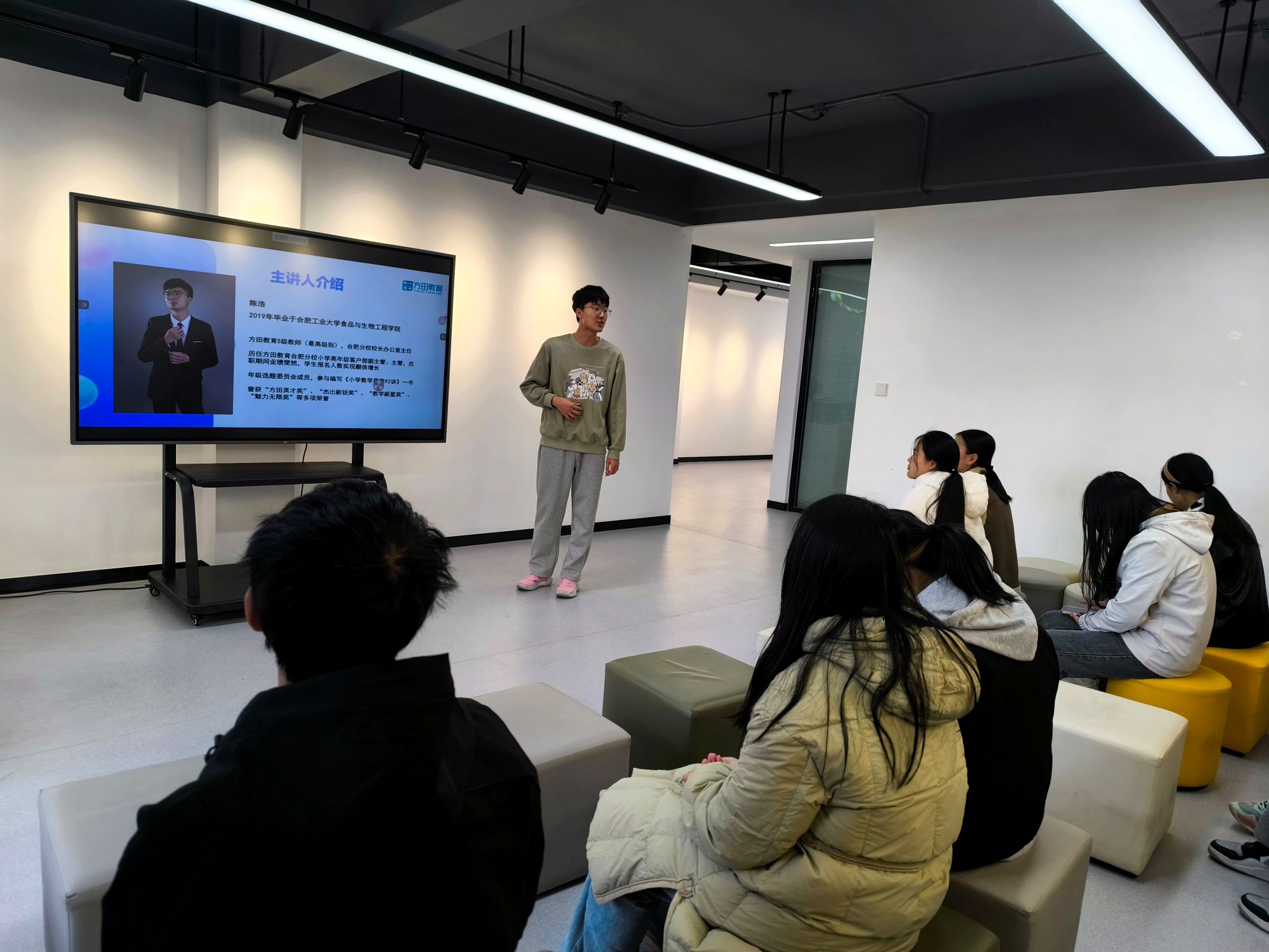 11月27日下午,76net必赢线路检测中心第三十七期“走向职场,走向未来”职商讲堂在翡翠湖四号学生社区沙龙空间举办。方田教育S级教师,合肥分校校长助理陈浩应邀担任主讲。学院本科生、研究生20余人参加。