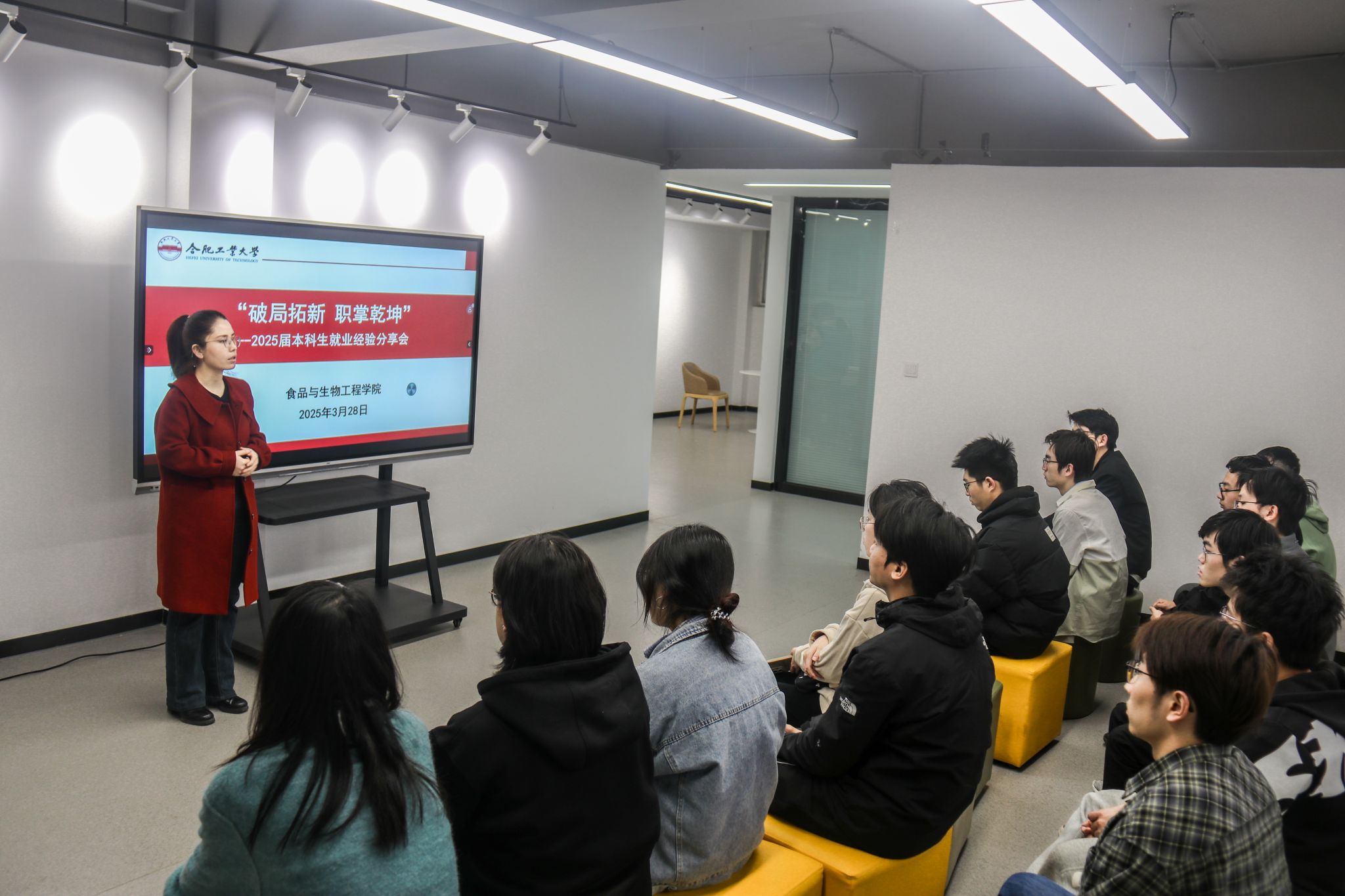 3月28日下午,76net必赢线路检测中心在六号楼学生社区沙龙空间举办“破局拓新,职引乾坤”求职经验分享会,76net必赢线路检测中心2025届已就业学生代表受邀作分享,本科未就业同学20余人参加。