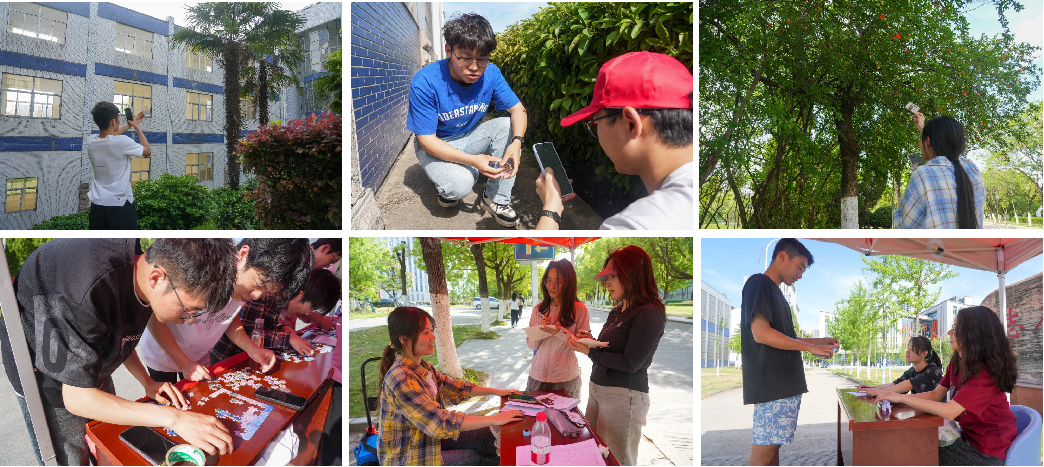 活动设计“任务闯关+沉浸体验”模式,除了给参赛者提供任务卡线索,在校园内搜寻药食同源植物外,还设置“药草连连看”“盲盒识植”“标本创意秀”等特色环节。“任务闯关”中,同学们热情高涨,穿梭于校园各点位,通过拍照打卡、知识问答、创意拼图等方式积累积分。在“药草连连看”等特色项目中,同学们通过趣味互动和创意实践沉浸式感受药食同源文化的魅力。活动现场,76net必赢线路检测中心辅导员栗瑞杰全程指导,详细介绍每种植物的药用价值与历史渊源,为学生答疑解惑。