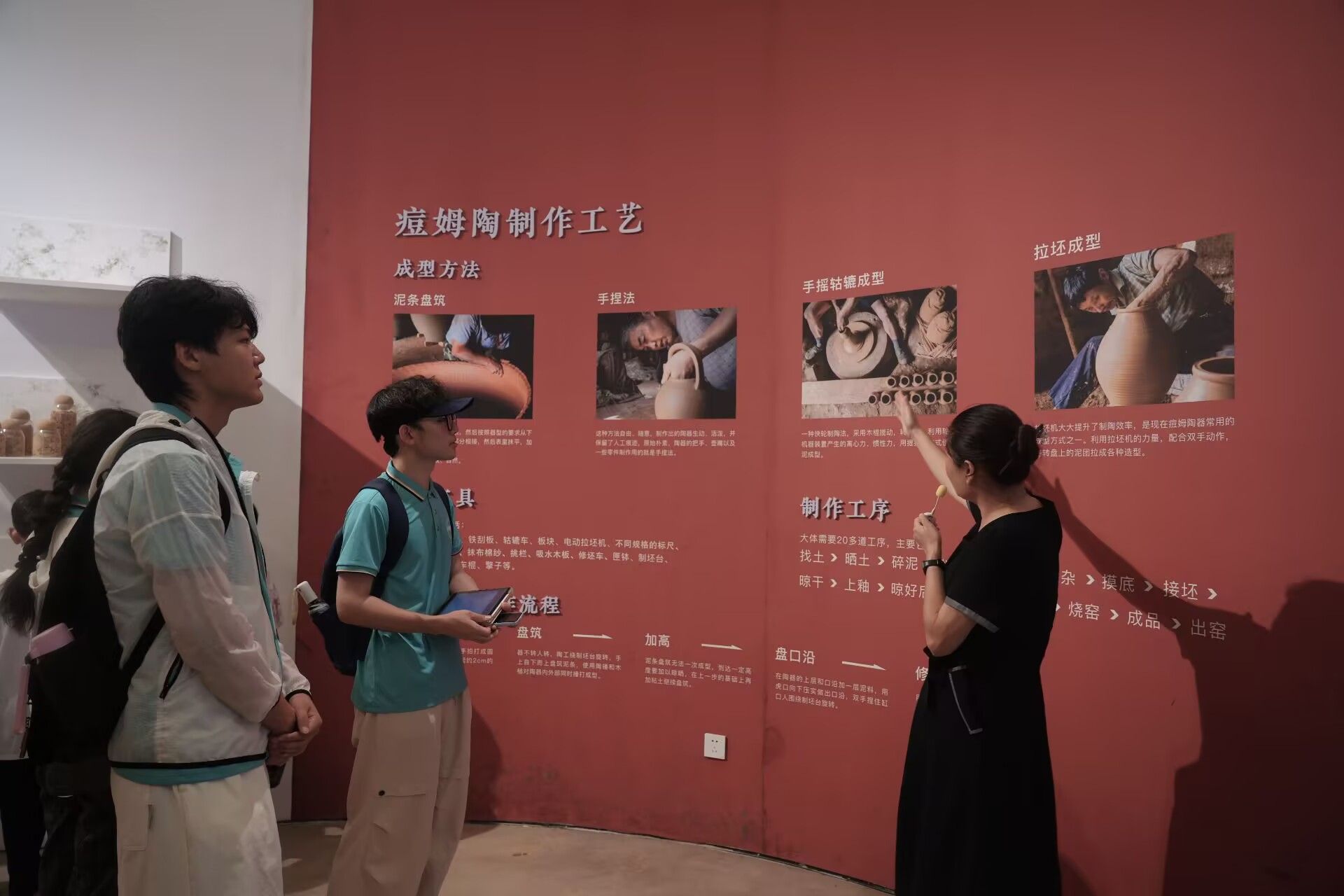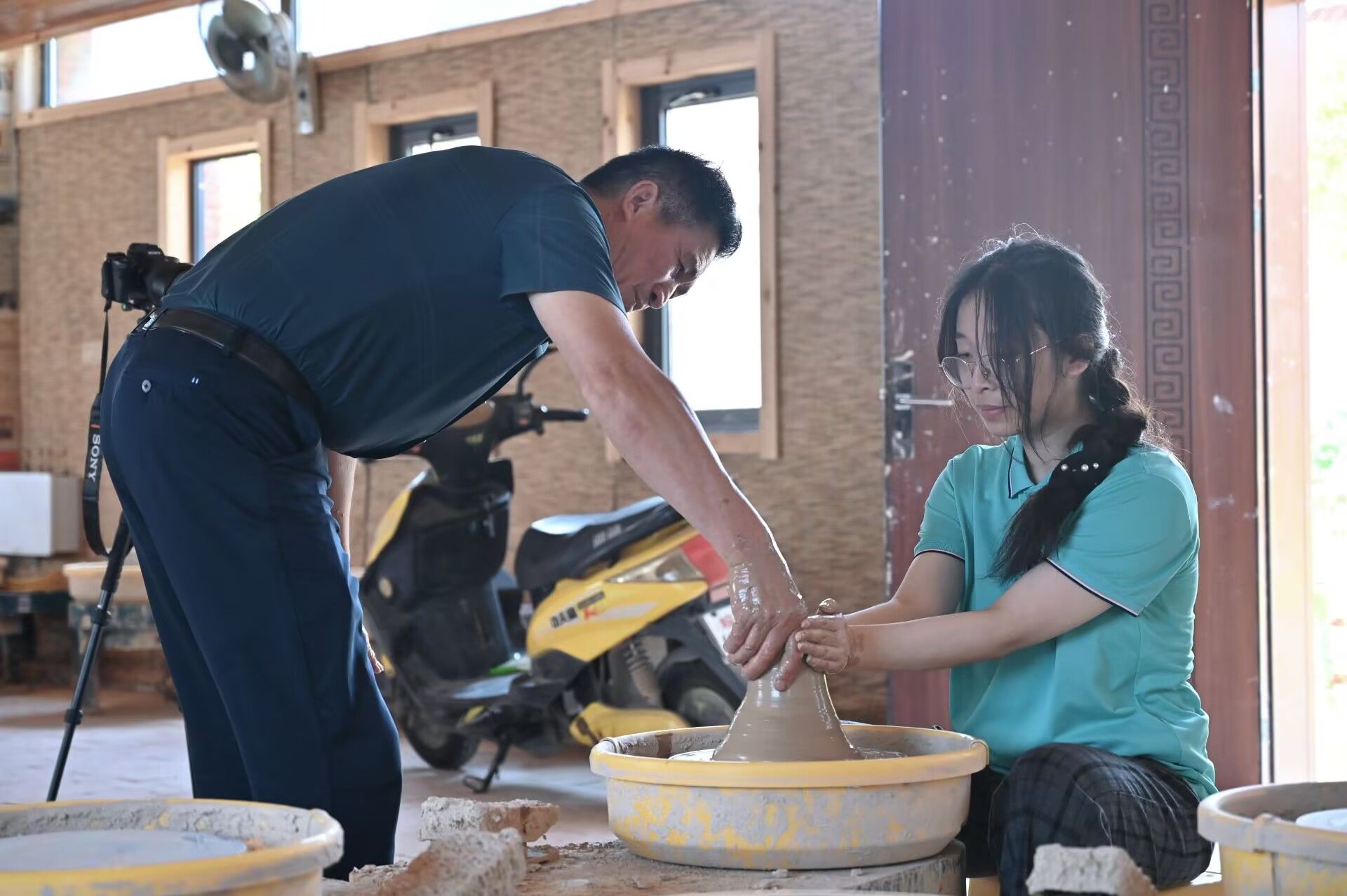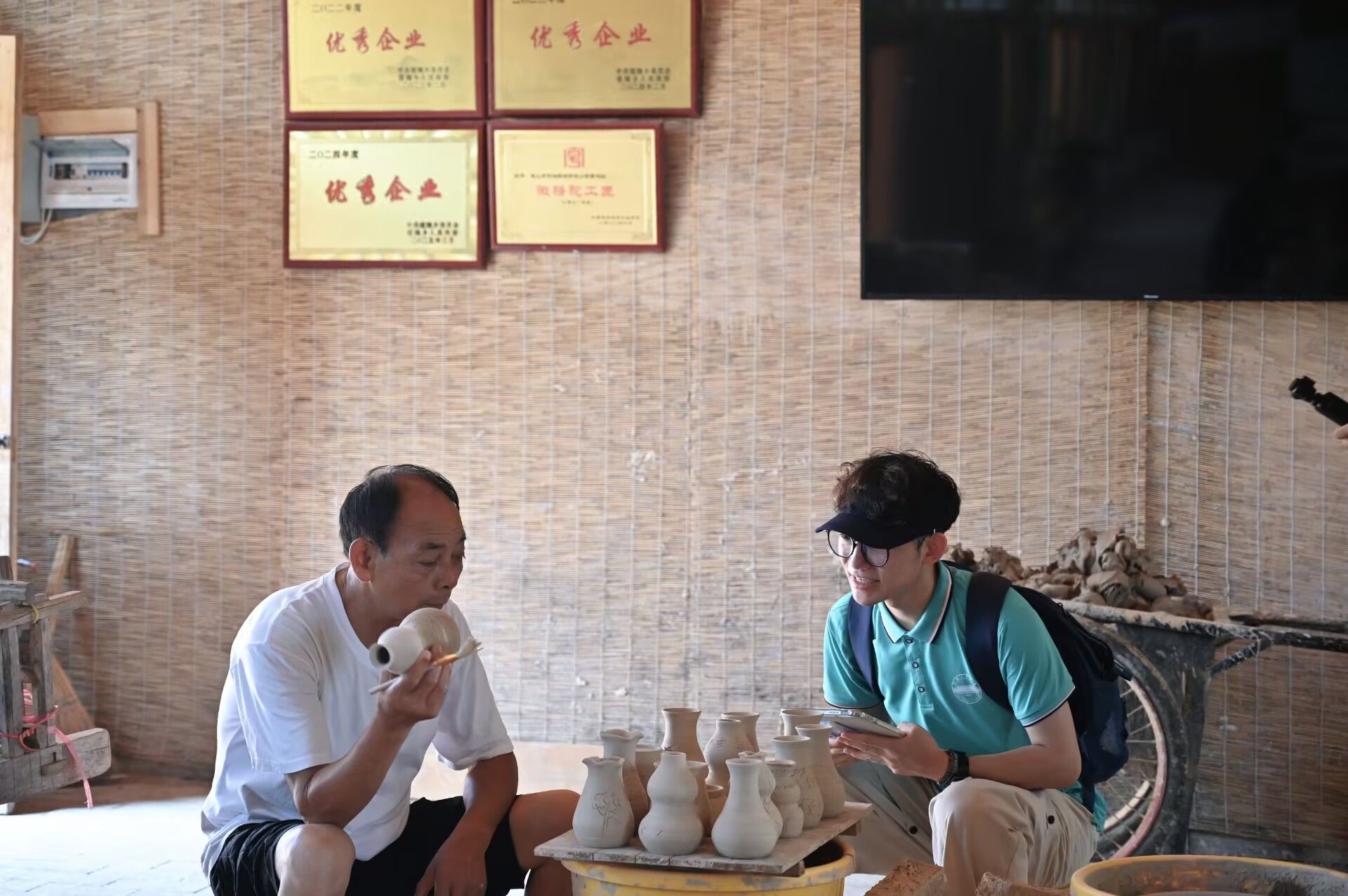 7月7日,76net必赢线路检测中心“星火匠心”暑期“三下乡”社会实践团队一行6人探访潜山痘姆古陶非遗传习基地,沉浸式体验古陶非遗魅力,探索非遗文化传承与乡村振兴的融合路径。