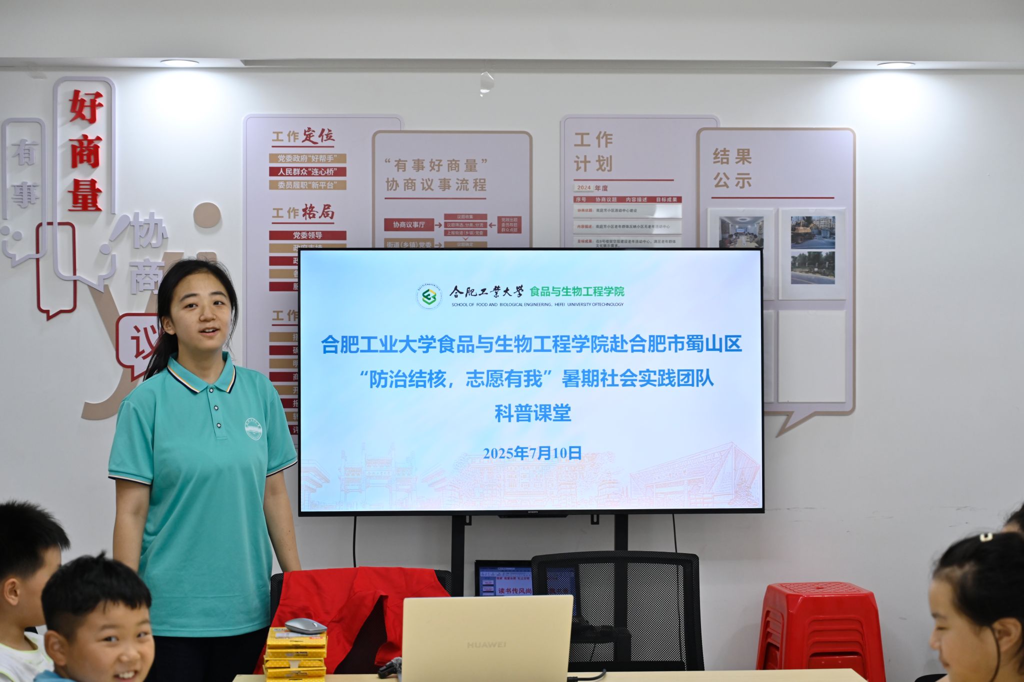 为提升青少年对结核病的科学认知,增强自我防护能力,7月10日下午,76net必赢线路检测中心“防治结核,志愿有我”暑期“三下乡”社会实践团队一行8人深入常青街道,开展了一场主题为“知核防核,青春同行”的青少年结核防治科普课堂。在活动现场,实践团队成员与小朋友们一起化身为“安全小卫士”,踏上了守护呼吸健康之旅。