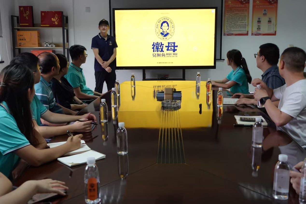 在黄山牛嫂食品有限公司,同学们参观了臭鳜鱼加工车间,同时胡总监介绍了三种服务端与客户端信息交互模式,助力企业精准捕捉市场需求,优化产品,提高大众的喜爱度。在安徽省珍味坊食品有限公司朱成龙总经理的介绍下,团队成员了解到该公司鳜鱼采用低温高湿解冻技术,用智能分拣机器筛选不同规格的鳜鱼,年产能3亿元的背后是广东2000吨级原料直采与全程冷链。徽母实业有限公司则建成了半自动化生产加工厂、电商直播基地和徽菜大师工作室,高峰期日加工鳜鱼1万吨,同时计划筹建黄山市首家臭鳜鱼博物馆,让非遗技艺与工业同框。宴仙食品有限公司里,非遗传承人程爱武则向团队成员介绍了臭鳜鱼腌制的一些技巧,确保“生臭熟香”。在皖新徽三食品供应链有限公司,人力行政总管朱笑霞带领团队参观了从原料处理到成品腌制的全流程机械化生产线,同时通过朱丽萍主任的介绍,了解到“徽三”拥有先进的生产线,同时还开发了即食臭鳜鱼预制菜产品。通过调研,团队发现了臭鳜鱼加工过程中的共同难题:腌制过程中会有极小部分臭鳜鱼肉色偏红的偶发现象,原料成本高昂导致销售成本也居高不下,二产升级,道阻且长,但“臭”味已然飘出新香。