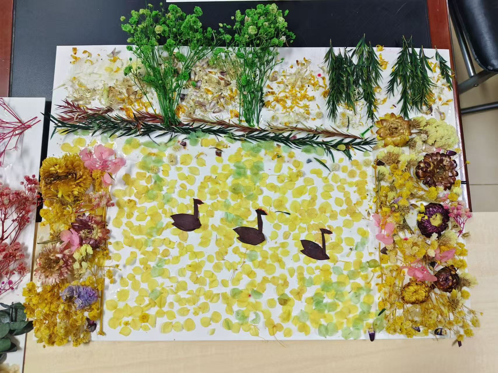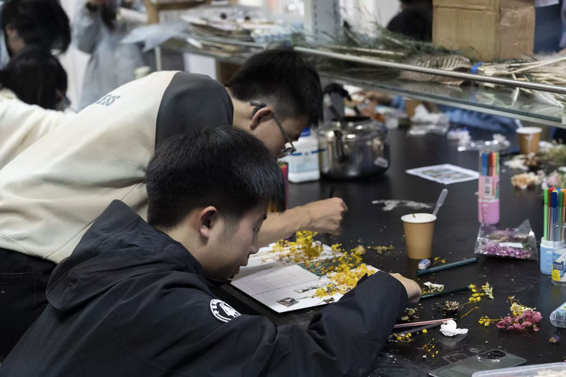 下午举办的干花画制作比赛以“拾花缀景忆校庆,妙笔生花绘工大”为主题,鼓励参与者以校园景观为题材进行艺术创作。同学们利用干花材料,巧妙构思、精心制作,在提升审美与动手能力的同时,也进一步深化了对校园文化的情感认同。优秀作品创作者将获得第二课堂星级认定,有效激发了学生的参与热情。