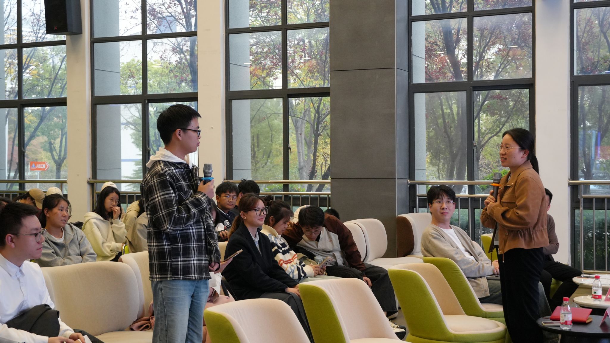 接着,活动进入核心环节——面试模拟与HR点评。多位同学走上舞台,直面名企HR,接受“真枪实弹”的模拟考验。现场还原真实求职场景,5位学生一一上台参与管培生、销售培训生和理科教师等岗位面试。面试结束后,面试HR和台下观察员HR对学生的面试细节进行一一点评。结合学生表现,从简历优化、自我介绍、未来职业规划、对企业的充分了解、面试礼仪与形象等方面进行专业点评与指导,给予学生针对性的意见和建议。活动尾声,现场观摩学生踊跃提问,与HR深入交流。