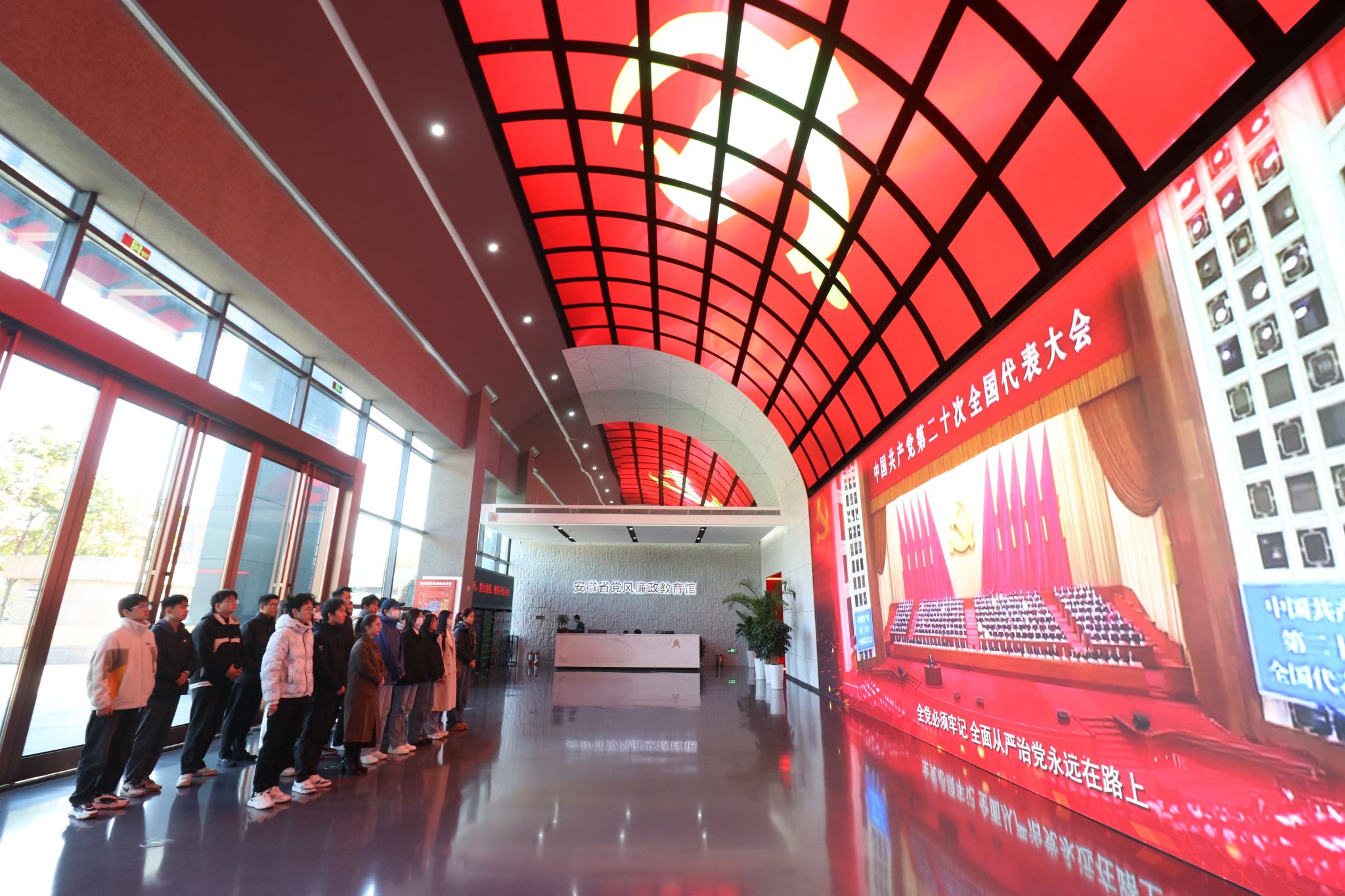 11月19日上午8:50,76net必赢线路检测中心组织第74期党校入党积极分子班学员代表21人在辅导员努尔比耶姆·麦麦提的带领下前往安徽省党风廉政教育馆进行实践学习。