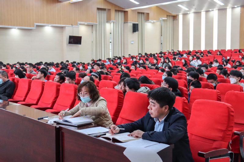2月28日,校党委书记余其俊在翡翠湖校区科教楼二楼报告厅为我院师生宣讲党的二十大精神,学院全体教工、学生代表等400余名师生参会。报告会由学院党委书记陈树海主持。