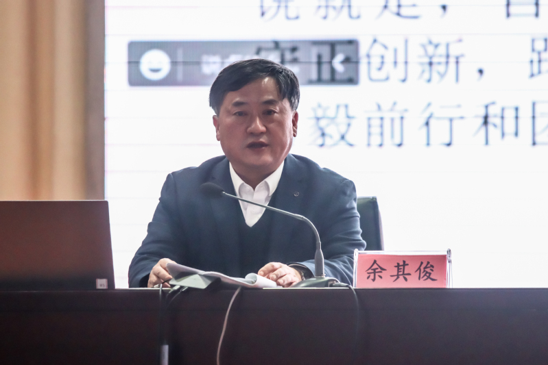 余其俊要求,青年大学生作为新时代的“排头兵”,要牢记习近平总书记的嘱托,树立为祖国为人民永久奋斗、赤诚奉献的坚定理想,发扬不畏艰险、敢为人先的改革精神,吃苦耐劳、踏实肯干的奉献精神,不畏艰难、锐意进取的奋斗精神,怀抱梦想又脚踏实地,敢想敢为又善作善成,立志做有理想、敢担当、能吃苦、肯奋斗的新时代好青年。他要求,学习贯彻党的二十大精神要在全面学习、全面把握、全面落实上下功夫,全校师生要把思想和行动统一到党的二十大精神上来,把学习成果转化为工作思路、具体举措和实际行动,为实现中华民族伟大复兴贡献更大的智慧和力量。