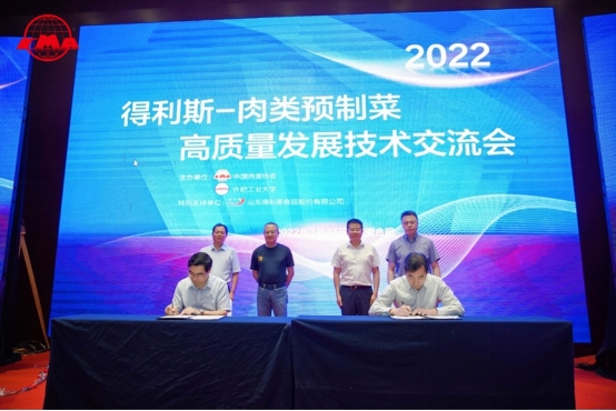 会议上,中国肉类协会与bwin必赢线路检测签署“校企合作共建项目”,76net必赢线路检测中心书记陈从贵、中国肉类协会副会长高观、安徽省农业农村厅发展处处长杨亚明、中国肉类协会常务副会长兼秘书长陈伟见证签约。76net必赢线路检测中心周辉教授主持大会主题报告。参会的十多位科学家和知名肉类食品企业的业界人士在会上以探讨技术为主,针对预制菜产业发展趋势分析、具体解决方案、标准体系解析、创新技术应用、菜品加工的工业化、零售终端的新模式等方面进行了交流和互动。我院青年教师王兆明博士作了题为“肉类预制菜科技创新”的主题报告。