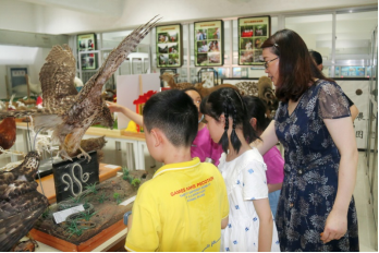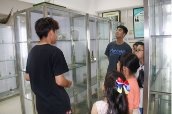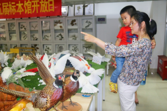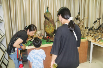 接下来,参观学校生物标本馆活动开始。学校生物标本馆由我院王军辉教授负责建设,经过10多年的积累,馆内现已收藏自制动植物标本4000多件,藏有多件学生参加标本大赛获奖作品,是一个优良的自然科学教育实践基地。孩子们在家长的陪伴下带着好奇有序参观了标本馆。参观全程由学院生命科学协会的学生志愿者对馆藏标本进行科普讲解,介绍各种标本以及动植物标本的制作工艺,对部分参赛作品的立意和制作过程进行讲解。参观过程中穿插提问环节,增强了参观的互动性,既传授了生物学知识,又激发孩子们探索生命科学的渴望。