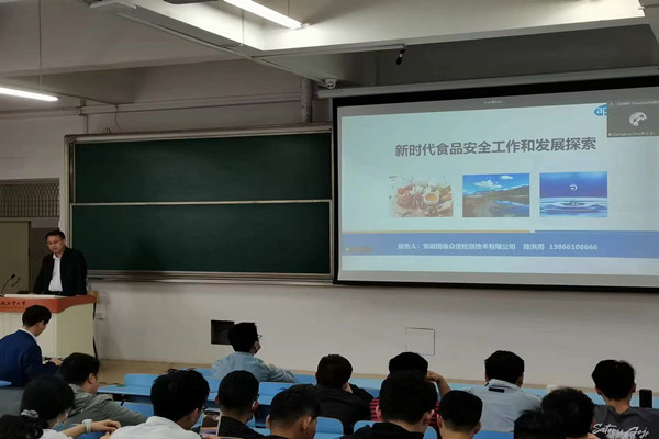 首先,安徽国泰众信检测技术集团陈洪周董事长先生为大家作“新时代食品安全工作和发展探索”主题分享。他从食品安全监管的历史、食品安全的技术支撑现状和食品安全的未来发展三个方面展开,并提出“预防为主、风险管理、全程控制、社会共治”的食品安全治理方针。同时,他还鼓励我院食品专业的学生积极投身食品安全工作中,共同守护人民群众“舌尖上的安全”。专业分享结束后,陈洪周董事长还给同学们讲述了自己创业以来的心路历程和经验教训,让同学们受益匪浅。