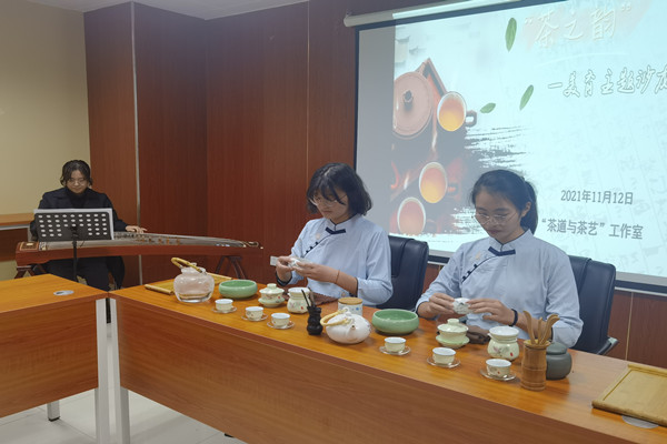 活动伊始,工作室指导老师葛永莉从工作室的申报背景、建设目标和重点工作等方面对“茶道与茶艺”工作室进行介绍,并从工作室所肩负的育人使命出发,提出工作室力求实现“氛围营造、净化心灵、内外兼修”的建设追求。