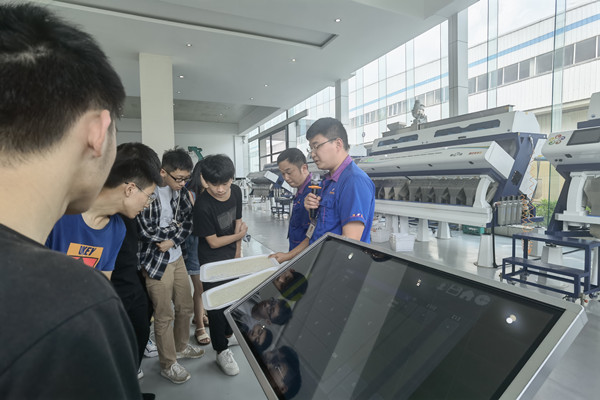 7月9日下午,学院师生前往安徽捷迅光电技术有限公司。在公司负责人的带领下,了解色选机的世界。在参观完色选机制造车间和云体验馆后,公司研发中心主任就中国制造与同学们展开深入交流,他十分认同学院“食安家国,药济民生”的育人理念,引导学生培育跨学科的思维和能力,以实际行动助力中国制造。