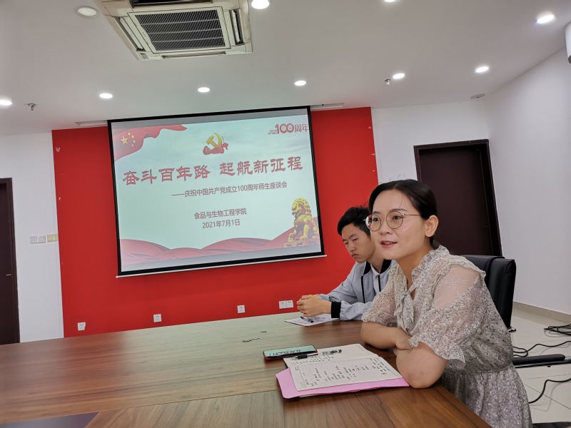7月1日上午,在组织观看完庆祝中国共产党成立100周年大会视频直播后,76net必赢线路检测中心在学院办公大楼205召开“奋斗百年路,启航新征程”庆祝中国共产党成立100周年师生座谈会,学院班子领导成员、全体辅导员老师、学生党员代表和优秀学生代表近40人参加座谈会。座谈会由学院党委副书记兼纪委书记李艳主持。