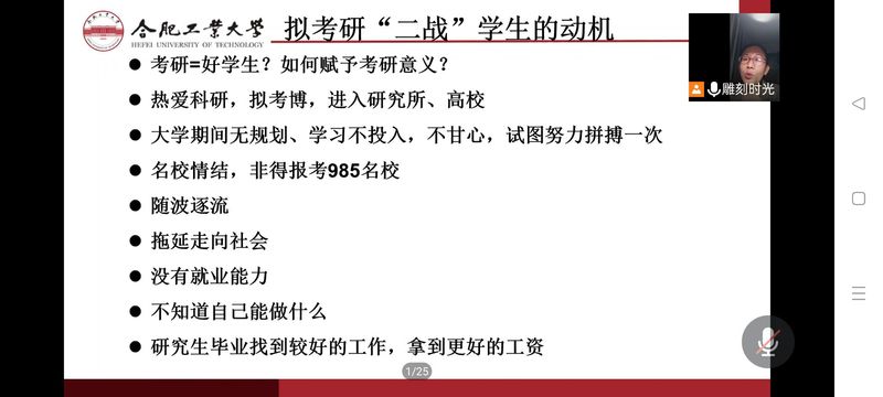 会议围绕毕业生学业完成情况、毕业设计任务完成情况、就业与考研“二战”、文明安全离校四部分展开,李艳老师指出家长要加强与学生沟通交流,关注学生心理健康,与教务老师联络,确保孩子能顺利完成学业任务,督促孩子严格按照毕业设计要求完成任务,把握关键时间节点,及时调整心态。此外,李艳还从拟考研“二战”学生动机、“二战”需谨慎、考公形势严峻三个角度出发,解读学生“二战”、考公心理,助力家长与孩子的有效沟通。最后李艳从爱校荣校、文明离校等方面出发,提醒毕业季是心理问题的高发季,需要父母时刻关注学生动态,及时给予学生心理关爱和疏导。
