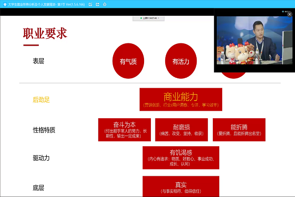 2月1日下午,76net必赢线路检测中心于腾讯课堂线上平台成功举办“走向职场、走向未来”专场讲座第四讲之“大学生就业形势分析及个人发展规划”。主讲人为三只松鼠股份有限公司人力资源总监鼠三江先生及三只松鼠股份有限公司资深招聘经理、国家认证生涯规划师鼠伯乐先生。 我院党委副书记兼纪委书记李艳、我院团委书记万代林及全院超500名学生参加讲座。