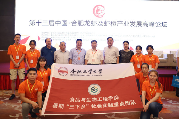 第十三届中国·合肥龙虾及虾稻产业发展高峰论坛于2019年7月12-13日在安徽合肥圆满召开,会议主题是“发展虾稻产业,助力乡村振兴”。论坛由安徽省农业农村厅渔业渔政管理局、合肥市农业农村局主办,国家虾蟹产业技术体系、中国水产养殖网共同承办,邀请了国内顶级专家教授、知名企业家进行主题演讲,来自多个投资机构、养殖基地和及虾稻产业领域共计五百多人参加了论坛。借此论坛召开的机会,在指导老师陆剑锋教授、林琳副教授的带领下,我院2019年暑期“三下乡”社会实践活动国家级重点团队——“赴我国稻渔主产区探寻稻渔综合产业新模式科技支农帮扶团”成员积极参与并协助本次论坛活动。