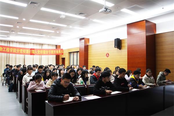 开班典礼后,南国君为全体学员讲授了《筑牢信念之基,锤炼意志品格,争取早日入党》的专题党课。他结合自身学习习近平总书记重要讲话精神的体会,阐述了端正入党动机的重要意义。从我们党的宗旨出发,通过革命、建设、改革开放不同时期的典型事例,进一步阐明共产党人的理想信念就是对马克思主义的信仰、对社会主义和共产主义的信念。他强调,理想信念是共产党人的政治灵魂和精神之“钙”,是安身立命的根本,从申请入党的那一刻起,就必须正确认识,牢记于心,付诸于行。南国君勉励全体学员,要真正成为一名共产党员,进而做合格的、优秀的共产党员,就必须始终把马克思主义作为自身最高政治信仰,以习近平新时代中国特色社会主义思想为指引,学会用马克思主义立场观点和方法分析问题解决问题的能力,始终保持健康向上的生活情趣,锤炼顽强意志和高尚品格,锻造专业素养和综合能力,通过持续的自我改造,真正从思想上入党,组织上入党,行动上入党,自觉做学习的表率、生活的表率、工作的表率,以食品生物人的自信、工大人的自信、中国人的自信,勇做新时代的弄潮儿,矢志为中华民族伟大复兴奋斗终身。