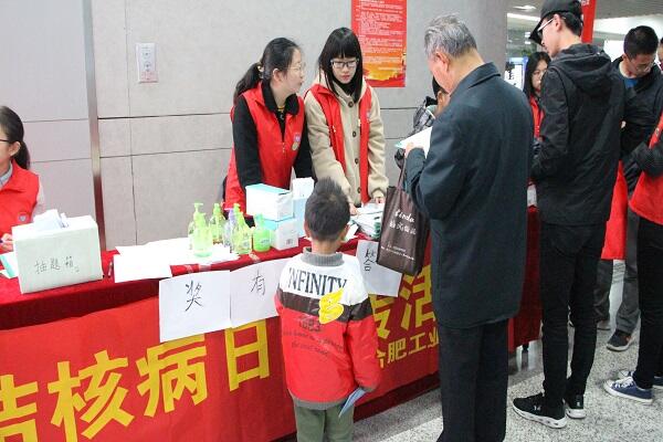 3月24日上午,在世界防治结核病日到来之际,76net必赢线路检测中心组织学生志愿者来到合肥高铁南站,向过往旅客和车站工作人员开展了百千万志愿者世界防治结核病日宣传活动。