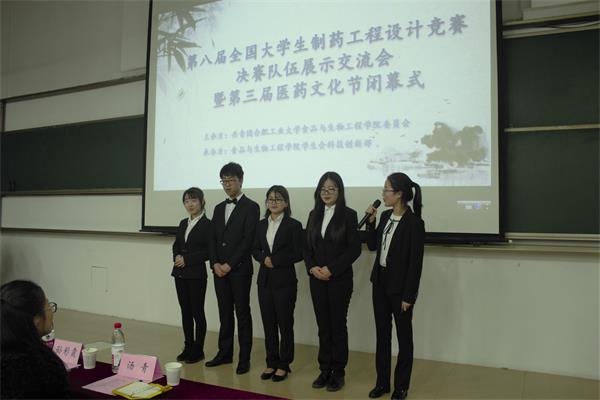 2018年12月2日晚19:00,76net必赢线路检测中心于翡翠湖校区二教201举办了“第八届全国大学生制药工程设计大赛分享会暨第三届医药文化节闭幕式”。学院党委副书记、副院长孙彩霞老师、安徽中医药大学药学院高级工程师汤青老师、76net必赢线路检测中心制药工程系主任王淮老师出席了本次活动,安徽中医药大学学生代表和76net必赢线路检测中心本科生参与了交流学习。